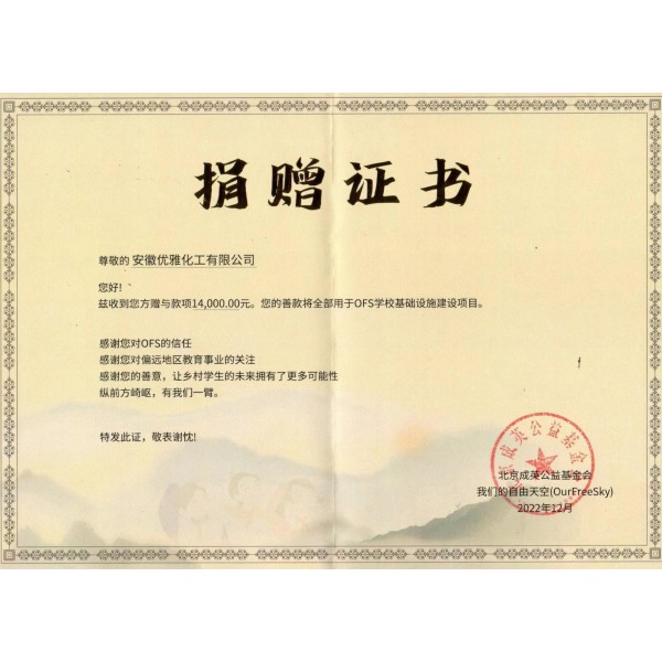 优雅化工始终坚信回报社会也是回报自己,始终尽所能的做环保做公益。看到OFS公众号上这篇四川省木里县依吉乡小学乒乓桌采购项目申请,潘总毫不犹豫的做出决定,让我们来帮助完成这个项目,让孩子们能丰富课余生活,强身健体。公益像是一缕阳光,摄入每个人的心窝,给人温暖和希望。公益对我们来说并不远,公益就在我们身边。让2023年更温暖一点。